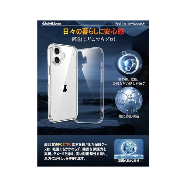 商品名:Boiyiklonn 対応 iPhone 17 ケース クリア いphone 17 用 保護ケース 耐衝撃 【米軍MIL規格・黄変防止】 iphone17 用 透明ケース 傷つけ防止 耐久性 落下防止 薄型 滑り止め 指紋防止 ワイヤレス充電可能 軽量 スリム設計 携帯便利 全面保護