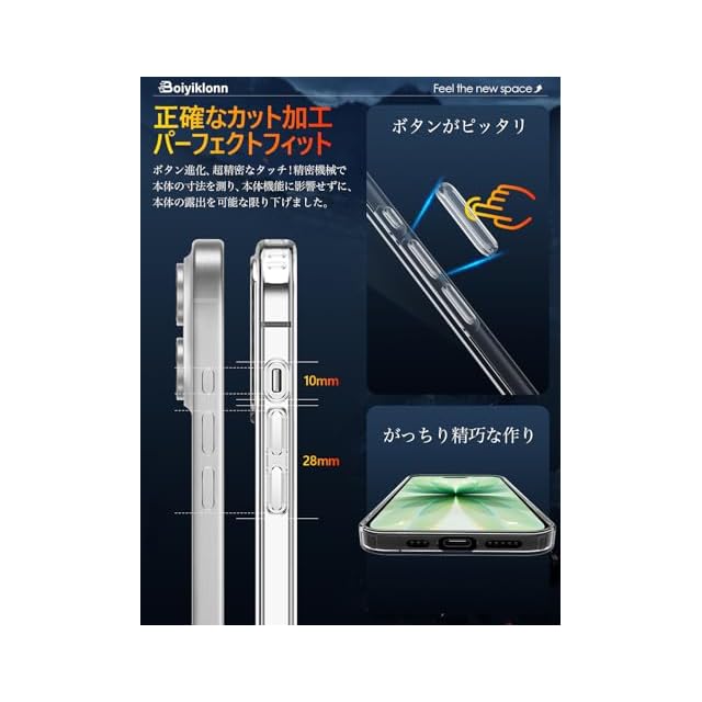 Boiyiklonn 対応 iPhone 17 ケース クリア いphone 17 用 保護ケース 耐衝撃 【米軍MIL規格・黄変防止】 iphone17 用 透明ケース 傷つけ防止 耐久性 落下防止 薄型 滑り止め 指紋防止 ワイヤレス充電可能 軽量 スリム設計 携帯便利 全面保護