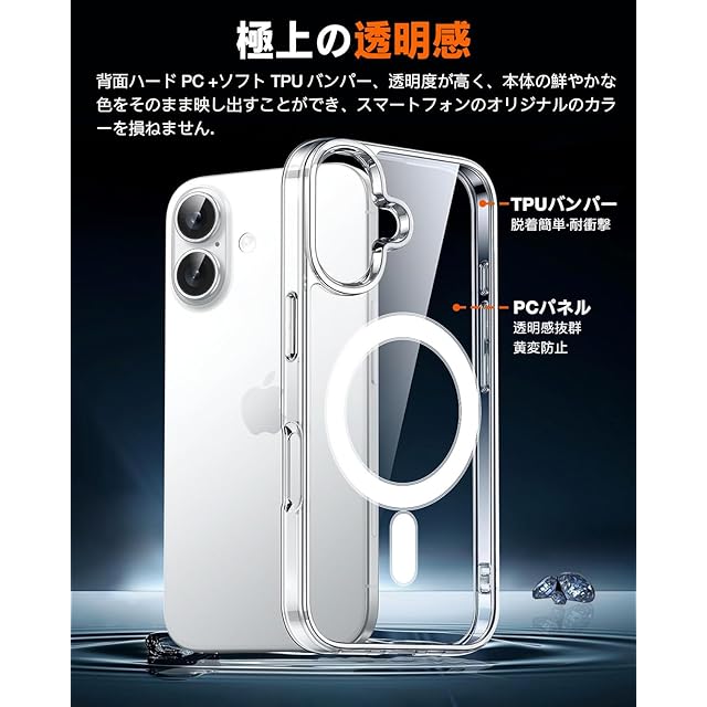 商品名:[TEELOFU] iPhone17 ケース クリア iPhone17 カバー MagSafe対応 透明 MIL規格 『黄変防止 ワイヤレス充電対応』マグネット搭載 スレ傷防止 滑り止め 軽い ストラップホール付 レンズ保護『PC背面 + TPUバンパー 傷に強い背面』一体フィット感 アイフォン17 透明 マグネッケース