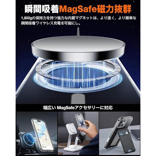 ✅【強力な磁力】組み込みのスーパー関数N52磁石の固定電力は1800グラムです。これにより、稲妻のような充電速度が、マグサフェウォレット、パワーバスク、パワーバスクなどのマグサフェアクセサリーと互換性があることをできます 車の電話マウント。ワイヤレス充電をより速く、より安定させます。