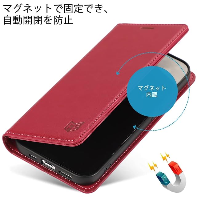 商品名:iPhone 17 用 ケース 手帳型 アイフォン 17 手帳型 ケース 高級PUレザー カード収納 マグネット スタンド機能 あいふぉん 17 携帯カバー 全面保護 いPhone 17(2025) スマホケース PU革 耐久性に優れる ローズレッド