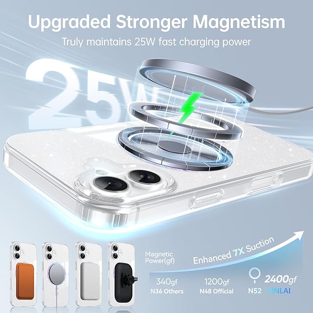 YINLAI iPhone 17 6.3インチ 専用 ケース カバー ラメ グリッター クリア|耐衝撃・Magsafe・マグセーフ対応・マグネット式|ワイヤレス充電・米軍MIL規格|黄ばみ防止・美しさ・長持ち・キラキラ・きらきら・ブリンブリン・かわいい|軽量・薄型・スリムフィット・スマホケース・女性向け