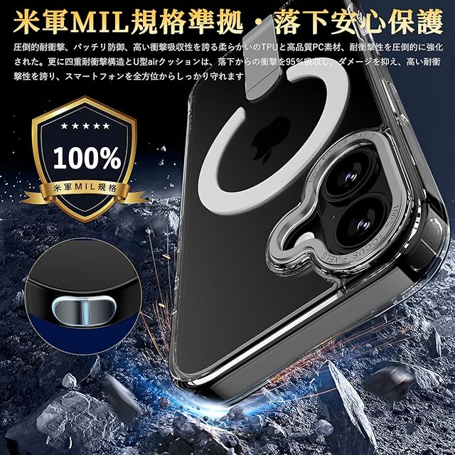 商品名:【DIFAYA】対応 iPhone17 ケース クリア マグネット搭載 『米軍MIL規格・Magsafe対応』マグセーフ対応 iPhone17 カバー 隠れスタンド 黄ばみなし ワイヤレス充電 耐衝撃 高質 アイフォン17 透明ケース 6.3 インチ