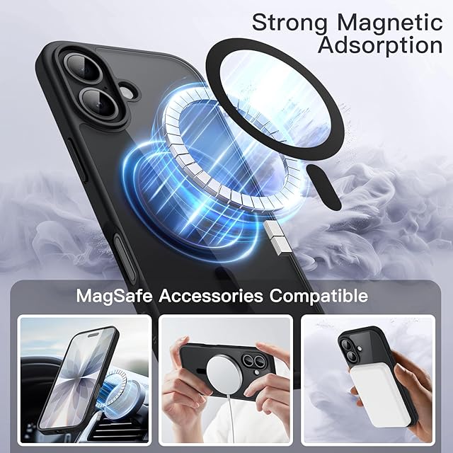 JETech iPhone 17 6.3インチ用 マグネット ケース MagSafeに対応 衝撃吸収 バンパーカバー ソリッドカラーマットTPUフレーム 傷つけ防止 クリアバック (ブラック)
