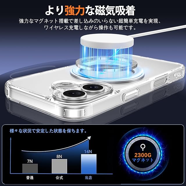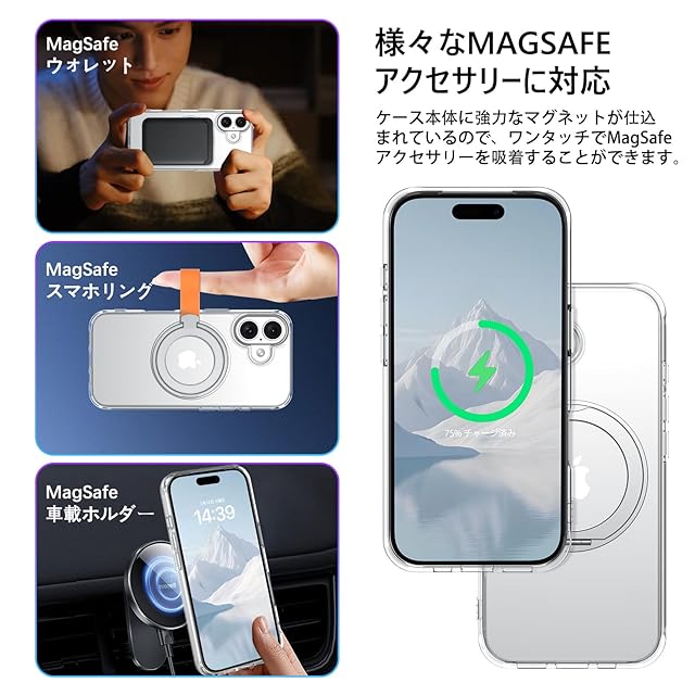 磁気吸着:アイフォン17 ケースの背面パネルには磁石が内蔵されており、非常に強力な吸着機能があり、さまざまな磁気アクセサリーと組み合わせることができます。保護ケースを装着したままでもスマートフォンを高速ワイヤレス充電可能。