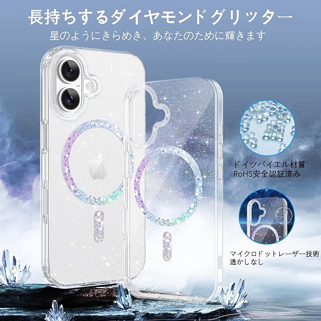 商品名:「2025最新登場」GaoBao iPhone 17 ケース キラキラ クリア MagSafe対応 黄ばみなし 軽量 薄型 耐衝撃 いPhone 17 ケース おしゃれ ワイアレス充電 ストラップ穴付き 透明 可愛い 6.3インチ クリア