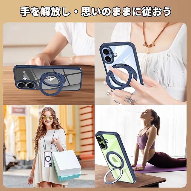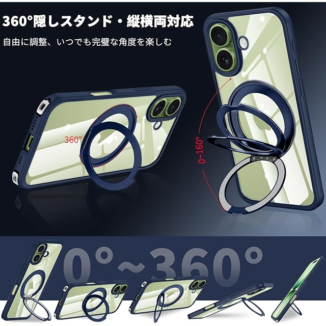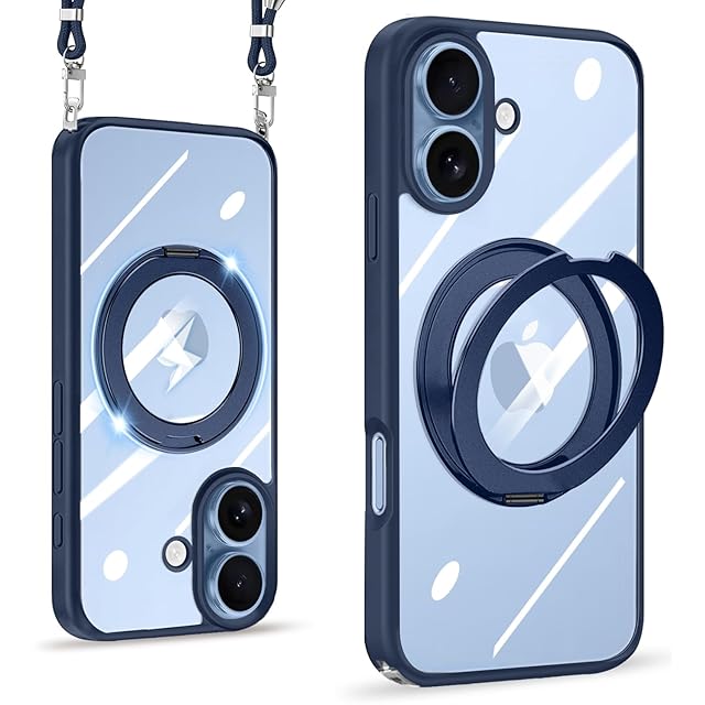 商品名:iPhone 17 用 ケース クリア ショルダー MagSafe対応 リング 360°回転スタンド ワイヤレス充電対応 いphone17 カバー 耐衝撃 透明 黄ばみなし アイフォン17 スマホケース 首掛け 肩掛け 斜め掛け 紐付き 斜めがけ 織りストラップ付き ネックストラップ ショルダー ケース 長さ調節可能 取り外し可能 落下防止 紛失防止 (ダークブルー)