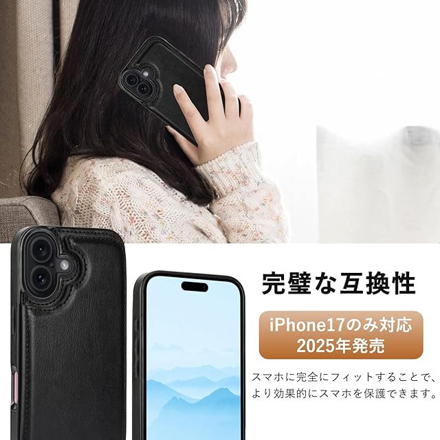 商品名:Eitsevn for iPhone 17 ケース 手帳型 背面 カード収納(3枚) アイフォン17 ケース カード入れ PUレザー スマホケース 耐衝撃 全面保護 多機能 指紋防止 いphone17 6.3インチ ブラック