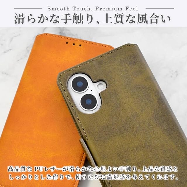 ・商品説明 - MagSafe対応 本革調レザーケース 薄型スリムタイプ -<br> 手帳型タイプ×MagSafe対応を掛け合わせた、良いとこ取りのケース!<br> 便利な機能を取りそろえながらながら、スリムにまとまった仕様です!<br><br> 落ち着いた雰囲気の全12色展開です。<br><br> 電源ボタンやカメラ穴、マイク穴等は機種にあわせた設計の為、<br> 操作感を損ないません。<br><br> シンプルなデザインなので、ビジネスやフォーマルにもピッタリ!<br><br> 内蔵のTPUケースでしっかり端末を保護! 落下等の耐衝撃にも◎<br> 蓋はマグネット留め<br> ( ※カードホルダーへの磁気テープ式カードの収納は非推奨 )<br><br> サッと取り出せる、かさばりにくい薄型スリムタイプ!<br><br> 【商品仕様】<br> 素材:PUレザー(ポリウレタン樹脂)、TPU(熱可塑性ポリウレタン)<br> 仕様:耐衝撃・衝撃吸収、MagSafe対応、カードホルダー、収納ポケット、スタンド機能、マグネット留め<br><br><br> 【注意事項】<br> ※こちらのレザーケースにストラップホールはありません。<br> ※機種により色仕様が若干異なる場合がございます。<br> ※iPhone12/12 Proは共用です。<br> ※iPhoneSE 第3世代/第2世代/8/7は共用です。<br> ※磁石を使用した製品となるため、<br> 磁気記憶型カードの収納、通帳類との接触は非推奨となります。<br><br> ※製品の色味に関しては、お使いのデバイスの表示性能や設定により<br> 変化する可能性がありますのでご注意ください。<br> 商品に端末本体は含まれません。<br><br> 【シズカウィルRe】<br> シズカウィルReとは「エコで快適な日常を、リーズナブルな価格をご提供したい。」という思いのもと生まれたブランドです。<br><br><br>