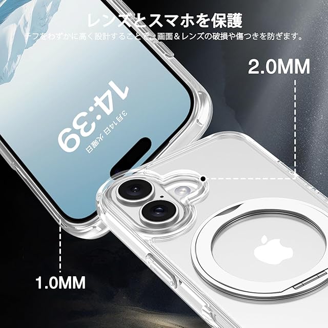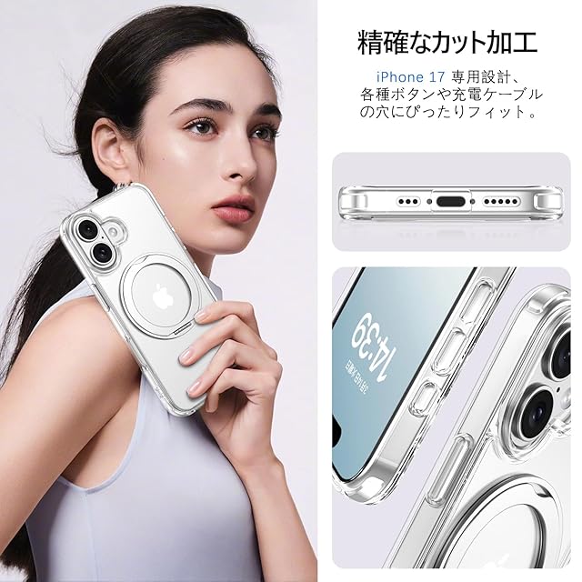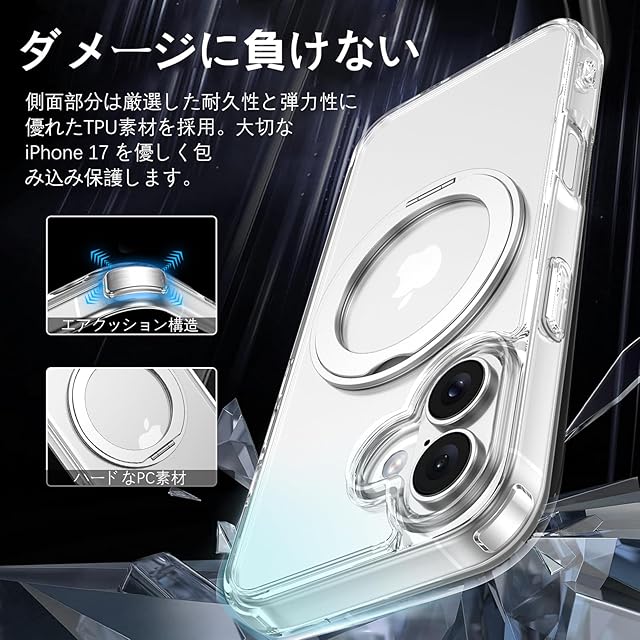 商品名:BENTOBEN iPhone 17対応 ケース クリア MagSafe対応 ワイヤレス充電 360°回転スタンド 縦横両対応 耐衝撃 黄変なし マグネット内蔵 ストラップホール付き iPhone17対応 ケース カバー クリア