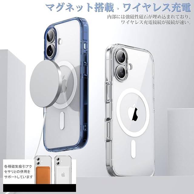 【ワイヤレス充電対応】一体型のデザインで、ケース内部に360度全周一体の高性能磁石を埋め込み、ワイヤレス充電に対応しています。使用時に外れにくく、問題なく使用できます!