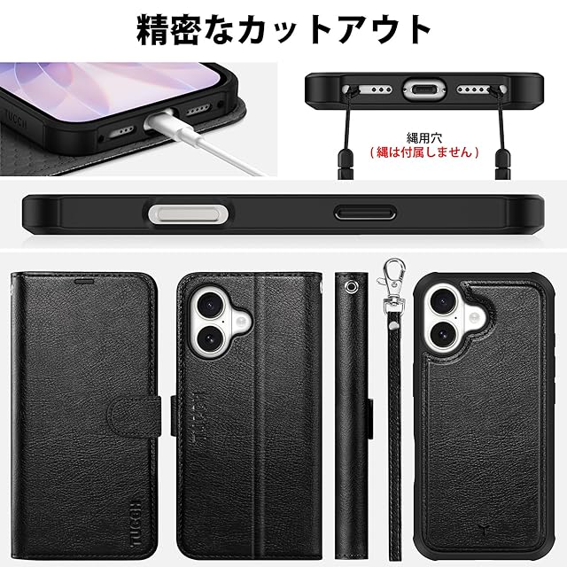 商品名:TUCCH iPhone 17 対応 ケース 手帳型 2 in 1 分離式 6.3インチ ストラップ付き 取り外し可 RFIDブロッキング 4つカードポケット ストラップホール 横置きスタンド機能 衝撃吸収 全面保護 PU合皮 あいふぉん17対応携帯ケース 2025年発売 5G テクスチャー グラファイト