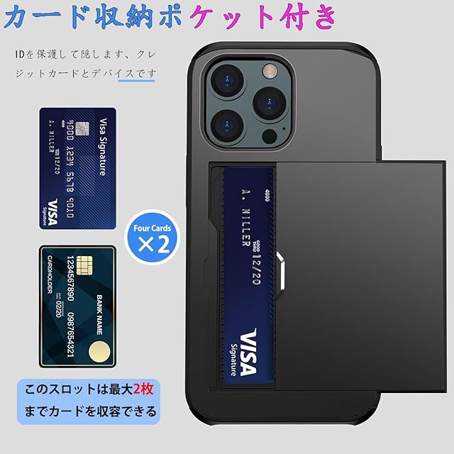 商品名:MuZiF iPhone 17 用 ケース カード収納 耐衝撃構造 米軍耐衝撃 全面保護 擦り傷防止 PC 背面収納 アイフォン17 用 カバー ケース(iPhone 17用,ブラック)