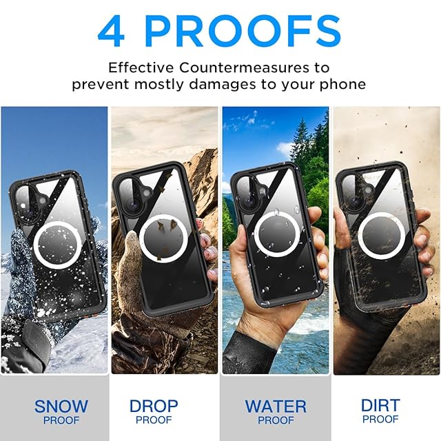 AICase iPhone 17用クリア防水ケース MagSafe対応 防水/防雪/防塵/耐衝撃、IP68認証 360°全身保護 iPhone 17用完全密閉型水中カバー6.1インチ