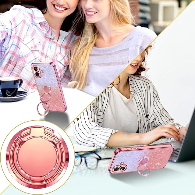 商品名:KAJICOO iPhone 17 ケース ダブルリング付き グリッターカード&リストストラップ 17 カバー 軽量薄型 キラキラ デザイン可愛い おしゃれ 女子向け レンズ保護 iphone 17 スマホケース - ローズゴールド