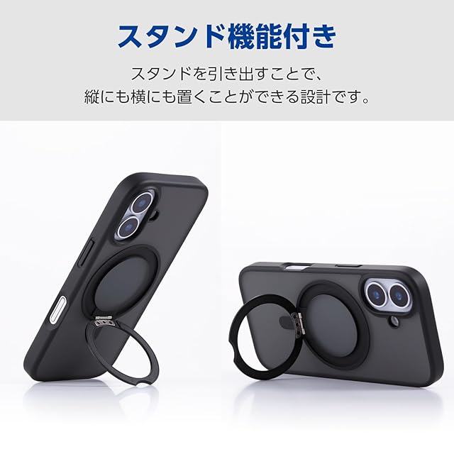 商品名:エレコム iPhone 17 ケース カバー クリア 耐衝撃 衝撃吸収 マグネット MAGKEEP ハイブリッド TPU 回転式スタンド ワイヤレス充電対応 4つ角エアークッション 背面硬度5H ブラック PM-A25AMAGSTBK