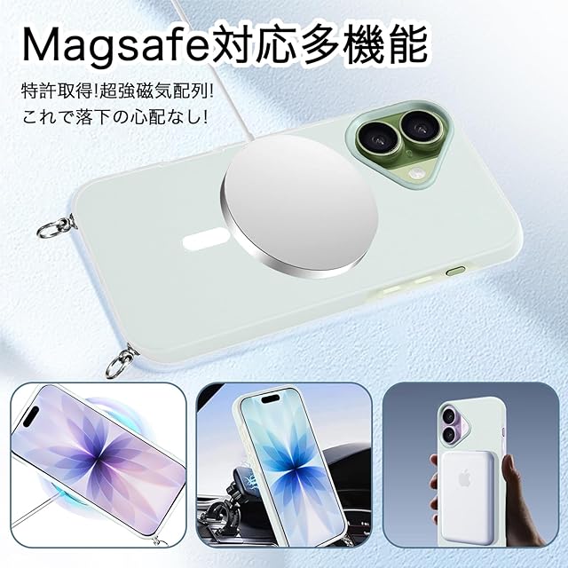 【MagSafeおよびワイヤレス充電対応】このケースはMagSafe対応で、さらにワイヤレス充電にも対応しています。ケースを装着したままで、充電器に置くだけで素早く充電が完了する便利さを提供します。マグネット内蔵により、MagSafeアクセサリーとの互換性も抜群。面倒なケーブルの抜き差しをしなくても、手軽に充電ができるので、忙しい日常でもストレスなく使用できます。ケースの設計は、充電効率を最大化するために厚みや素材にも細心の注意が払われており、見た目の美しさだけでなく、機能性も兼ね備えたデザインです。毎日の充電が快適に行えるので、機能性を重視する方にぴったりのケースです。