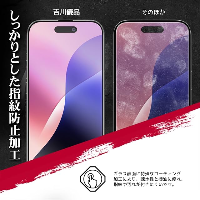 【指紋防止】:撥油コーティング加工されているため、ホコリや指紋など汚れにくくなっています。付着しても簡単に拭き取れます。