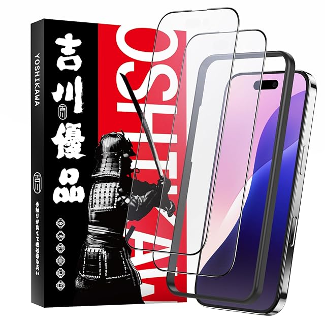商品名:吉川優品 iPhone 17 / iPhone 16 Pro用 アンチグレアガラスフィルム ゲーム向け さらさら 全面 保護フィルム ガイド枠付き 旭硝子製 強化ガラス 指紋防止 反射防止 ケースに干渉せず 高硬度9H 気泡無し 貼り付け簡単 (2枚セット)