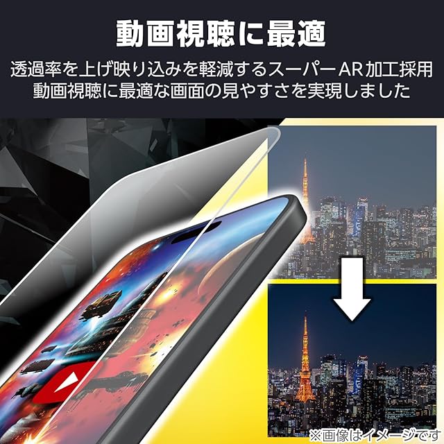スーパーAR加工により透過率をアップ。動画視聴の際などに光の映り込みに邪魔されずに視聴することができる、超透明タイプの画面保護ガラスフィルムです。