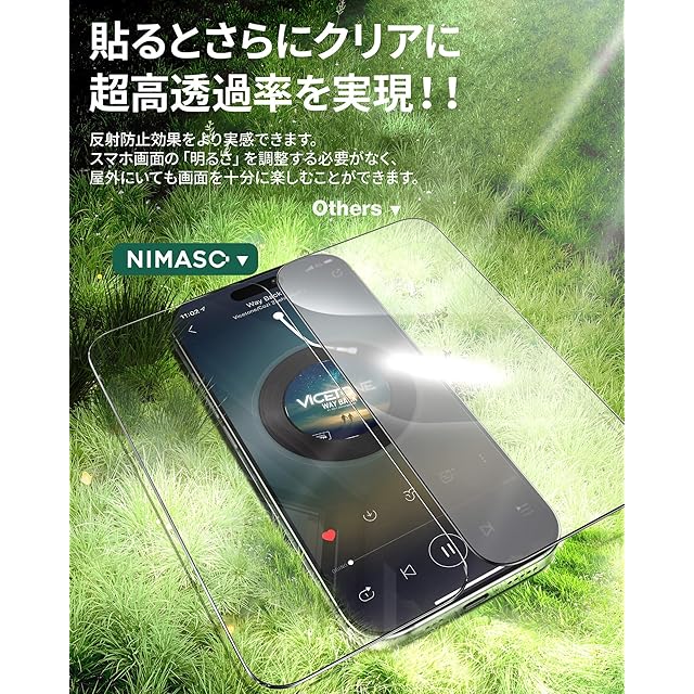 NIMASO ガラスフィルム iPhone 17 専用 ARアンチグレア 反射防止 強化ガラス トゥルーカラーフィルム 航空宇宙材料 米軍規格 9H硬度 超高透過率 すべすべ ガイド枠付き 自動除塵 1枚セット いPhone 17 対応(6.3インチ) 「バリ楽Box-Lite」DSP25G1774