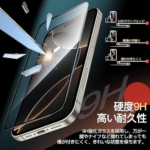[優れた強化ガラス] 最大9H(ナイフよりも硬い)の傷や摩耗から画面を高度に保護します。疎油性コーティングにより、画面に指紋や油汚れが付きません