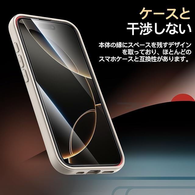 [ケースに干渉なし] 縁に十分なスペースを残し、お使いのケースがデバイスの周りを包み込むことができます。ほとんどの電話ケースと互換性があります