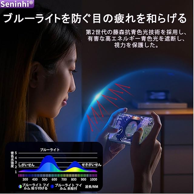 ★【ブルーライトカット技術】 強化フィルムのコア部分にブルーライトカット反射技術を追加して、ブルーライトカット率93%に達し、ブルーライトによるダメージを大幅に軽減し、視覚疲労を軽減し、目を保護し、近視のリスクを減らします。