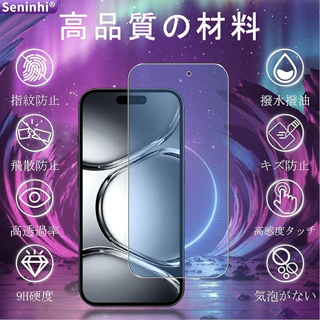 ★【対応機種】(i)Phone 17 Proフィルム 専用に設計されています。ガラスフィルム ブルーライト 2枚+レンズ保護フィルム 2枚。必ずご購入前に携帯電話の機種をご確認ください。【品質】Seninhi の年間売上高は累計50万枚を突破しました。日本の有名なブランドです。私たちの製品の品質を信じてください。安心して購入してください。