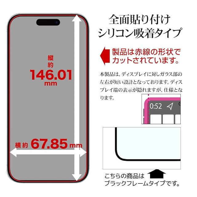 本製品は全面保護タイプ液晶保護フィルムです。 【高透明】クリアで歪みが少なく、写真や動画の色合いを忠実に再現する高品質ガラスを採用。高精細液晶に最適です。【最高硬度】最高硬度10Hの強靭なガラスで、美しい表面を保ちながら大切な端末をすり傷から護ります。【柔軟PETフレーム採用】柔らかい素材のPETフレームと傷に強いガラスを一体化。ガラス周囲の柔らかいPETフレームが角からの落下や衝撃によるガラスの角割れを防ぎます。 【防指紋性機能】表面に防指紋性機能を付与したフィルムで指紋による汚れや視認性の低下を防ぎます。【指滑りなめらか】平滑度の高いガラスを採用。質の高いガラスならではの滑らかな指すべりです。※端末に保護シート等が貼られている場合は剥がしてからご使用ください。