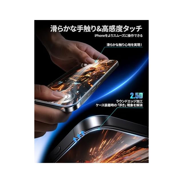 「指紋防止・滑らかな触り心地」本製品は撥水撥油のAF(Anti-Fingerprint)コーティング加工とスムーズタッチ加工により、指紋や汚れがつきにくく、油分や水分が強く付着した汚れや指紋がついても、拭き取るだけで綺麗になります。また、手触りも滑らかで、毎日の動画視聴や仕事、勉強、ゲームなどのあらゆるシーンでも、常に美しいアイホン17の画面をお楽しみいただけます。
