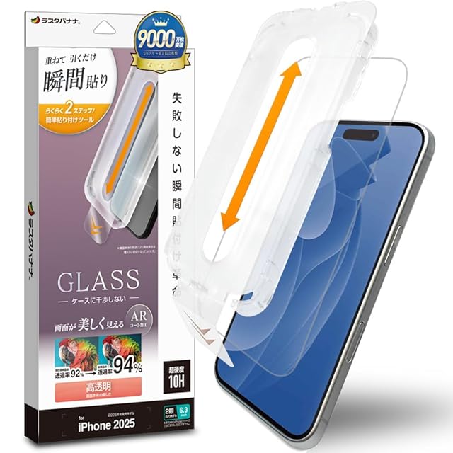 商品名:ラスタバナナ ガラスフィルム iPhone17 専用 平面保護 瞬間貼り付け革命 ARコーティング MTK4884IP5A