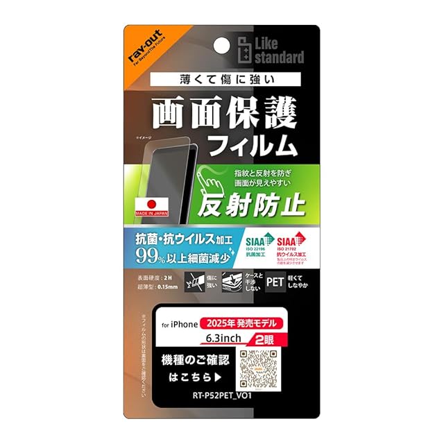 商品名:レイ・アウト iPhone 17用 フィルム 反射防止 保護フィルム 抗菌 抗ウイルス さらさら ゲーム 操作性向上 液晶 保護 割れにくい PET 薄い 柔らかい