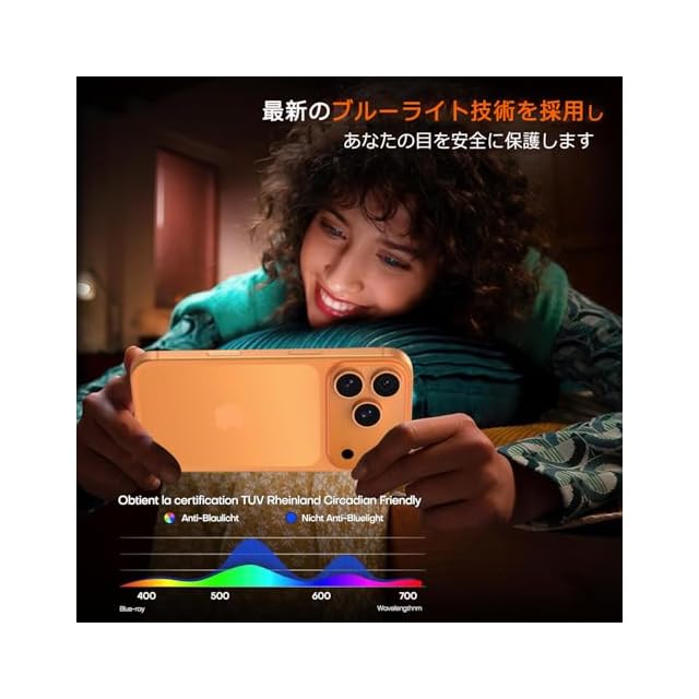 4. ブルーライト99%カットで目に優しい視界:ブルーライトカットコートが有害光線を99%遮断。目に優しい設計で長時間のスマホ使用でも視覚疲労を軽減します。高光沢の超クリア素材(透過率99%)がiPhone 17 pro maxの鮮明な発色をロスレス再現。さらにナノ抗菌層が表面の雑菌を99.99%抑制し、家族の健康を守ります。(ご注意:ブルーライトカット加工では、使用する素材によって色と画像が若干異なる場合がございます。例えば、横から见ると透明で、白い背景は薄黄色に见える。改版後は無色青色接着剤なので、無色透明によく似ています。事前ご了承ください)