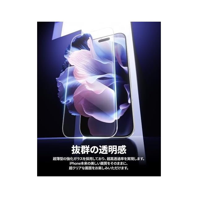 「透過率抜群」iPhone本来の美しい画質を損なうことなく液晶画面をしっかり保護します。フィルム自体は非常に薄くて軽く、透過率も高い商品です。iPhone 17本来の美しい画質をそのままに、超クリアな視覚体験を提供します。貼っていることを忘れるくらい、自然な感覚でアイフォンをお楽しみいただけます。