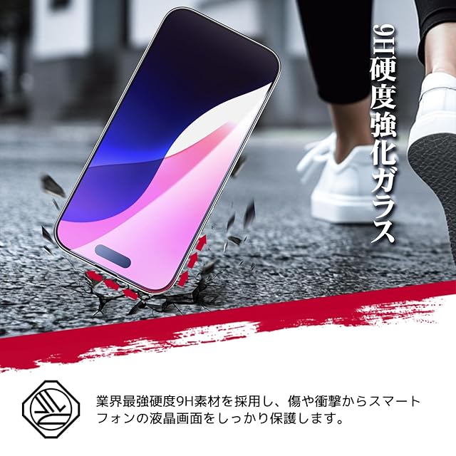 【覗き見防止】:対応機種:iPhone 17 / iPhone 16 Pro (6.3インチ) 専用。スマホを立てに持った時、画面を横から覗かれることを防ぐ180度ブラインド仕様のプライバシー保護フィルムです。周りの視線を気にすることなくラインやメールのやりとりを行えます。