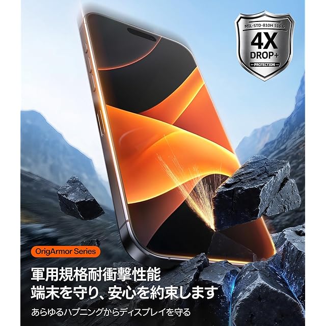 【米軍レベル9H+航空宇宙ガラス·究極の保護】 「落下や衝撃」からディスプレイを守る鋼の盾--宇宙船素材と同じ航空宇宙ガラスが、コンクリート落下やキーホルダーとの接触傷からディスプレイを防護。特許のイオン交換層が衝撃を分散し、日常のあらゆる危険に備えます。【対応機種】:いPhone17プロマックス用 フィルム 6.9inch