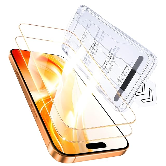 【貼付け失敗しない】本製品はiPhone17pro に対応するガラスフィルム2枚セットです。新進化自動吸着式ガイド枠を使って、3歩だけで保護フィルムを貼り付けます。そのうえ、自動ホコリ取りデザインだけでなく、ガイド枠のスロープデザインで、空気を順序に取り除くことができて、初心者でも気泡レスのまま綺麗に貼れます。