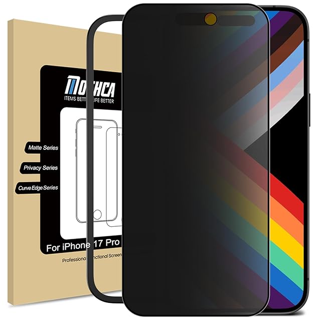 商品名:Mothca【覗き見防止&アンチグレア】iPhone 17 Pro用 ガラスフィルム 25°のぞき見防止 液晶 全面 保護フィルム 黒縁全面保護 穴なし ガイド枠付き 貼り付け簡単 サラサラ タッチ感 反射防止 指紋防止 硬度9H 飛散防止 キズ防止 アイフォン17 プロ対応