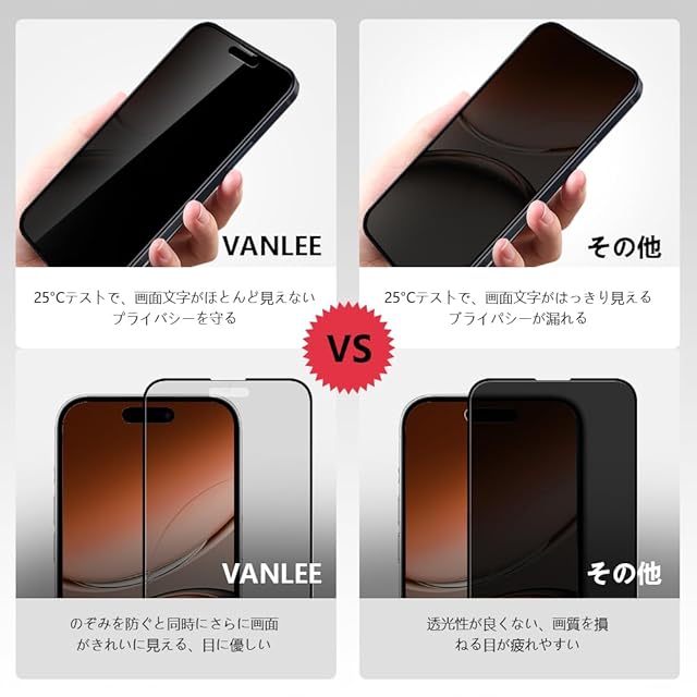 商品名:iPhone 17用 ガラスフィルム 覗き見防止 360度 VanLee 覗き見防止フィルム 360° プライバシー 全方向 iPhone17 強化ガラス 液晶保護フィルム のぞき見防止 ガイド枠付き