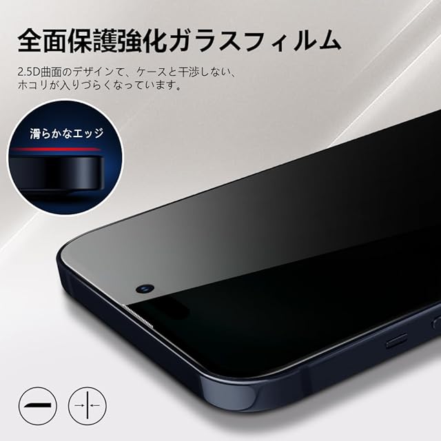 商品名:CYCOKLY iPhone 17用 ガラスフィルム 覗き見防止 25° プライバシー保護 2.5D 日本製素材旭硝子製 硬度 9H 指紋防止 自動吸着 気泡防止 ガイド枠付き 6.3インチ