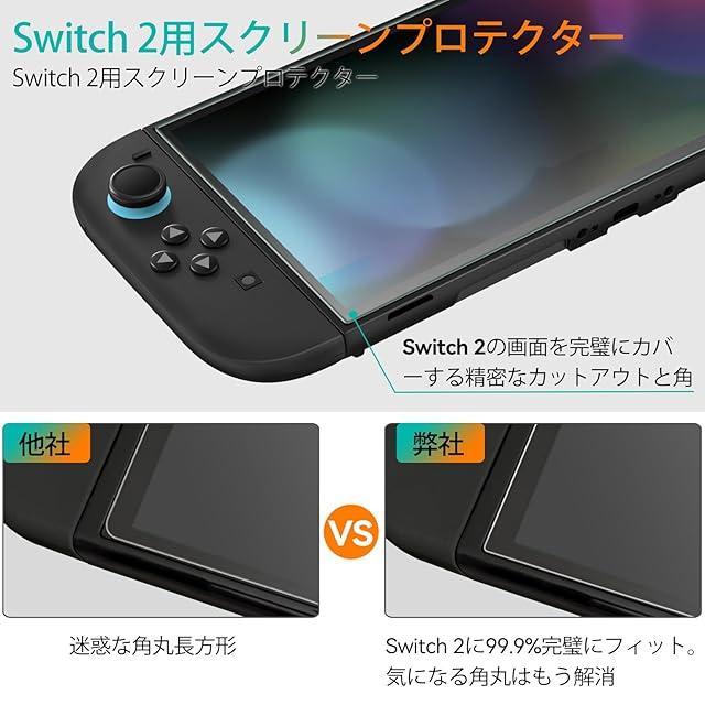 商品名:[4枚入り] [Switch 2 モデル対応][改良モデル] iVolerCompatible With Switch 2 保護 ガラスフィルム スイッチ 保護フィルム[ガイド枠付き] 強靭9H 3Dラウンドエッジ加工 撥水撥油 指紋防止 飛散防止 貼付道具付 自己吸着 気泡防止 極薄