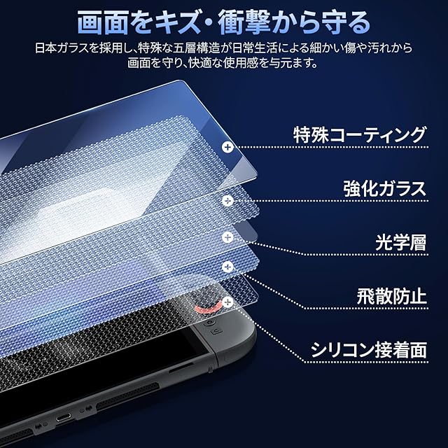 【日本旭硝子素材-9H硬度】Switch 2 強化ガラスフィルムは日本旭硝子素材を採用します。400℃の焼戻炉で4時間加熱し、二次強化し、硬度が9H硬度に達しています。 ポケットの中の鍵やコインなど、様々なものからSwitch 2を保護します。 防爆、耐スクラッチ性、落下防止。※ヒント:二次強化後の旭硝子は、靭性が高く、割れにくいです。ガラスの表面に防爆PET層を追加し、万が一、衝撃を受けて割れても飛散せず、ご自身の安全を守ります。