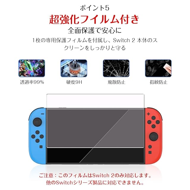 Nintendo用 Switch2 用 ケース 保護カバー クリア 耐衝撃 SGS認証 直接充電可能 ドック対応 着脱不要 スタンド機能 付き 軽量 薄型 0.3mm 高透過 裸機感覚 指紋防止 防汚 抗菌 ナノコーティング 強化ガラスフィルム同梱 9H硬度 Joy-Con 対応 360度保護 衝撃吸収 携帯用 収納 便利 ニンテンドースイッチ2用