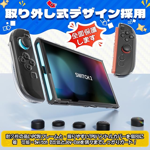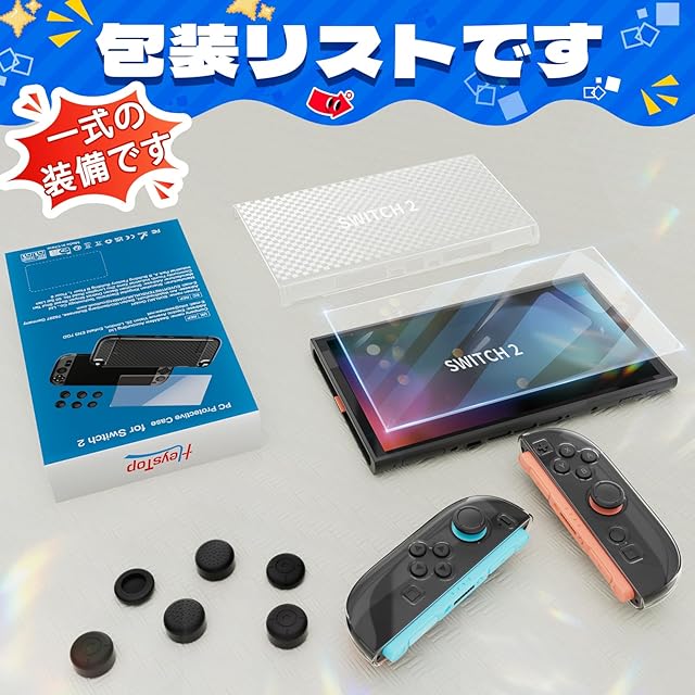 商品名:Switch 2 カバー HEYSTOP スイッチ2 分体式設計 着脱簡単 ドック対応 全面保護 TPU+PC材質 薄型 軽量 透明 超耐衝撃 指紋 気泡ゼロ 傷防止 ニンテンドースイッチ 2 ゼント