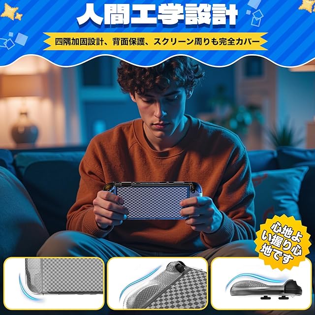 【長時間のプレイが劇的に変わる!人間工学設計】 「長時間プレイすると手が疲れる…」そんな悩みを解決するため、Switch 2 カバーには全く新しい人間工学に基づいたグリップ設計を採用しています。Joy-Con カバー背面に設けられた絶妙な膨らみが、驚くほど自然に手にフィットし、長時間のプレイでも疲れにくい抜群のホールド感を生み出します。付属の親指キャップと併用することで、グリップ力はさらに向上し、より正確で快適な操作が可能になります。