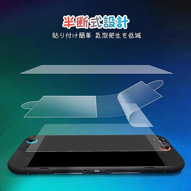 【簡単な貼付操作】Switch2 フィルムは静電式の非接着タイプなので、位置合わせが容易で、気泡が発生しにくい仕様です。取り外し時に残胶が残らず、画面を傷つける心配がありません
