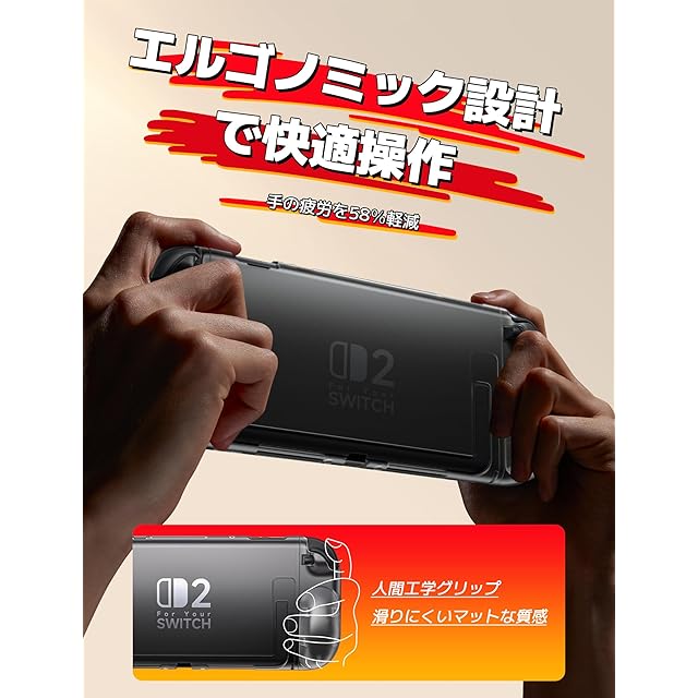 <b>JSAUX for Nintendo Switch 2:究極のドック対応ケース&デュアルグリップシステム</b><br> 本体を保護しながら、快適なグリップ操作も両立。JSAUX保護ケースセットは、常時保護とスムーズな操作性の両方を求めるゲーマー向けに設計されています。ケースを外す手間をなくし、すぐにプレイ可能です。<br><br> <b>ドックに置く、スタンドで使う、ケースを外さずプレイ</b><br> 超薄型デザインにより、完全な互換性を実現。Switch 2をそのまま純正ドックに装着でき、テーブルモード用のキックスタンドもケースを外さずに使用可能。すべてのポート、ボタン、通気口へのアクセスも完全に確保されています。<br><br> <b>2種類のグリップで自分にぴったりの持ち方を</b><br> JSAUXの最大の特徴です。大・小2種類の着脱式グリップカバーを同梱。大きなグリップは大人向けで長時間プレイでも深い快適性を提供し、小さなグリップはティーンや子供向けで安定した操作感を実現。両方ともマット仕上げで滑り止め&防汗加工済みです。<br><br> <b>薄型でしっかり守る</b><br> 傷に強いポリカーボネート素材を採用したマットシェルが、日常の擦り傷や汚れからSwitch 2を保護。指紋や汚れも付きにくく、常に清潔感を維持します。<br><br> <b>同梱内容</b><br> ·1× JSAUX 超薄型ハードケース(本体用)<br> ·1× 大型エルゴノミックグリップカバー(大人用)<br> ·1× 小型エルゴノミックグリップカバー(ティーン/子供用)