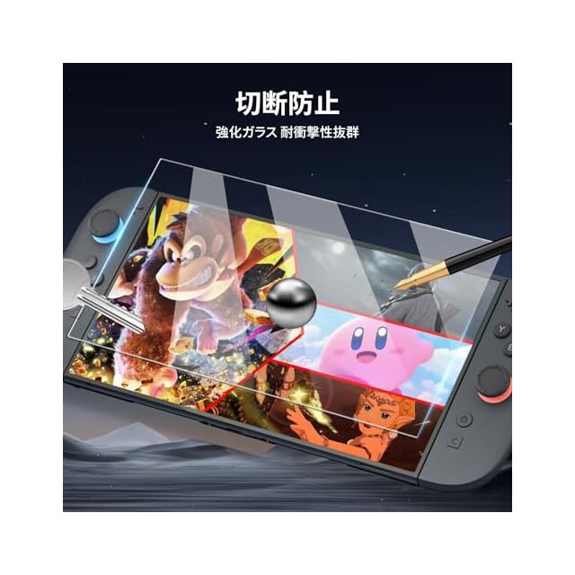 【完美契合・全面保護】HEYSTOP強化ガラスフィルムは、Switch2 スイッチ2にぴったりフィットし、液晶画面の曲面エッジまでしっかりカバー。保護力が高く、剥がれにくい設計です。