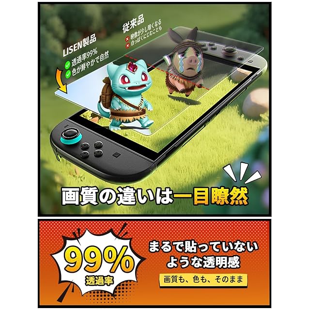 【反射防止で、みんなに見やすい】 LISEN独自のアンチグレア加工により、照明や角度による反射をしっかり軽減。友達と画面をシェアするときや屋外でのプレイでも、画面がクリアに見えます。 画像の立体感が向上し、3D処理によって超クリアで、ロスレスな画質を実現します。メタカラー表示技術を搭載し。どんなシーンでも快適なゲーム体験を提供します。